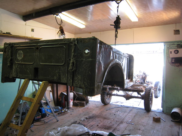 С двумя ручными лебедками можно снять кузов одному