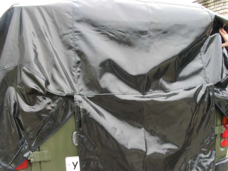 Тент черного цвета, цвет по заказу любой, ткань с односторонней пропиткой или с двусторонней пропиткой. Так же сказали, что вставляют стекла в тент