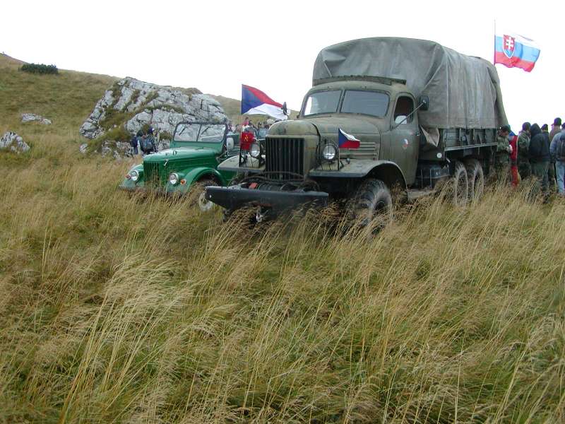 ЗИП 157 с флагами СЛОВАКИИ, ЧЕХОСЛОВАКИИ и СССР в словацких горах