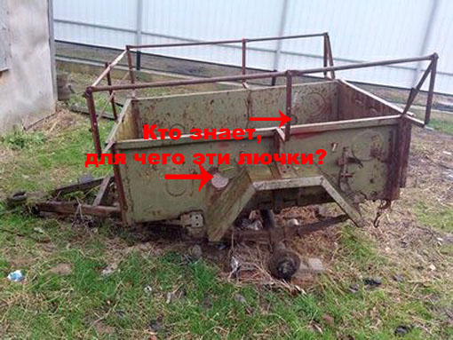 Спецы подскажите, что за лючки на прицепе (может мото помпа какая была), в днище тоже есть отверстия правильной формы??