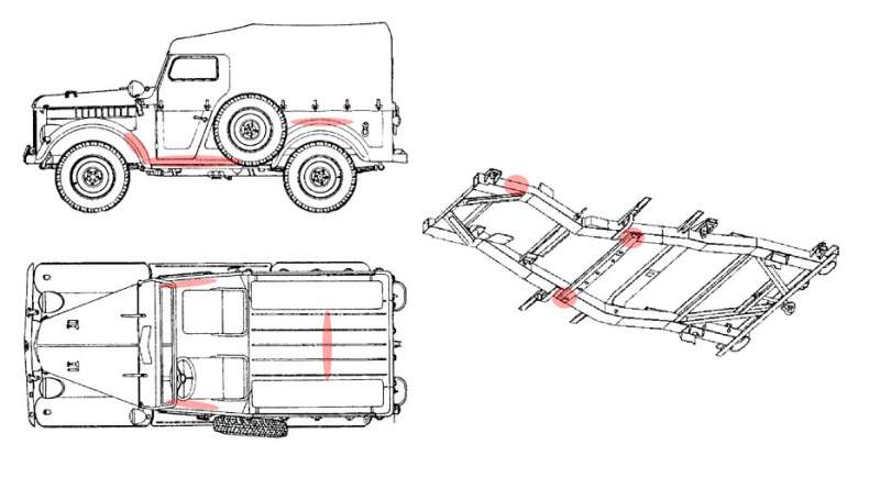 - по кузову, показаны места где чаще всего появляется корозия и кузов гниет насквозь.