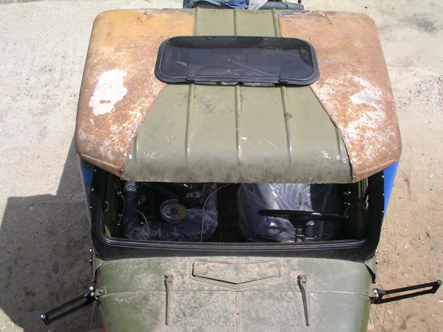 Крыша - разрезанный по осевой капот от ГАЗ-69 со средней вставкой из крыши ГАЗ-66.
