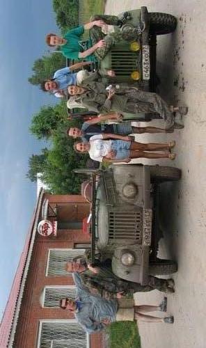 довольные заляпанные грязюкой люди и машины. деревня на ушах - серёга потерял глушитель:-)