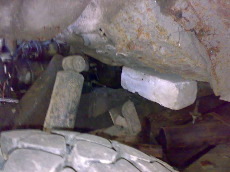 передняя часть "лодки" на проставке(кирпич) иначе кузов упирается в стартер