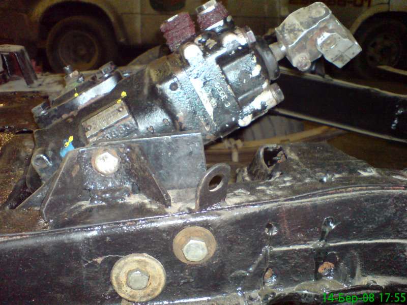 Редуктор ГУР крепится к раме ГАЗа через переходную пластину