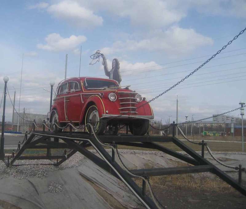 Машины на постаментах. Красиво стоит. Ночью светится.