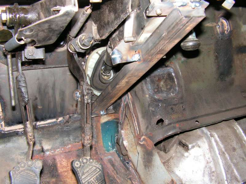 Рулевая колонка от "Ауди".Вначале хотел поставить с регулировкой по высоте-длине рул.вала,но потом передумал-выставил руль как мне удобно,и установил жестко.Крепится на трех точках-две штатно,в родные отверстия на торпеде,и одна к днищу.