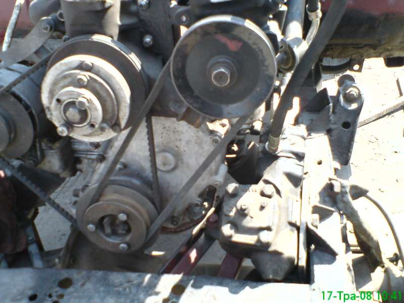 Расположение насоса ГУР от МБ-123 и ременного привода. Шкив меньшего диаметра изготовлен самостоятельно.