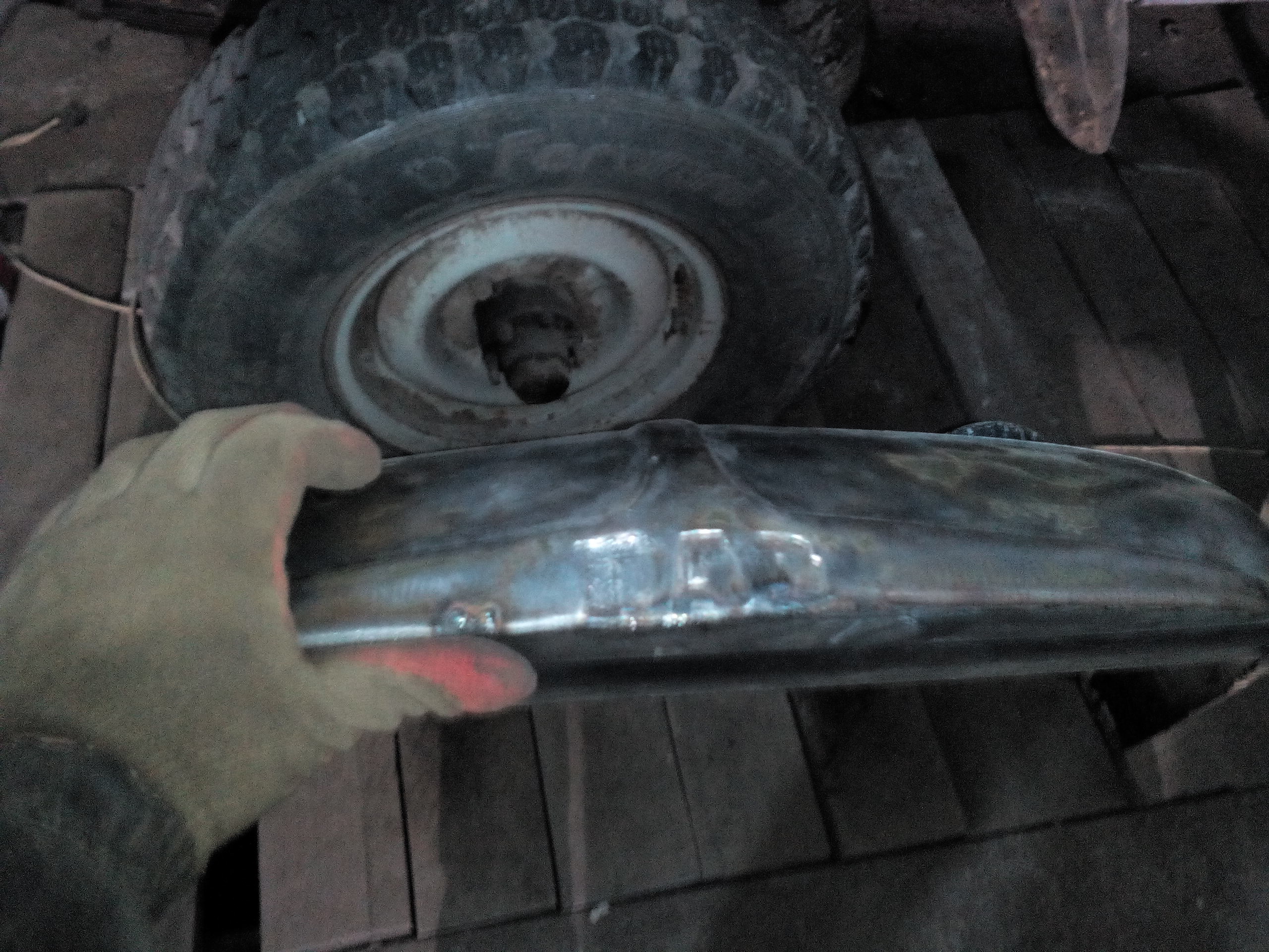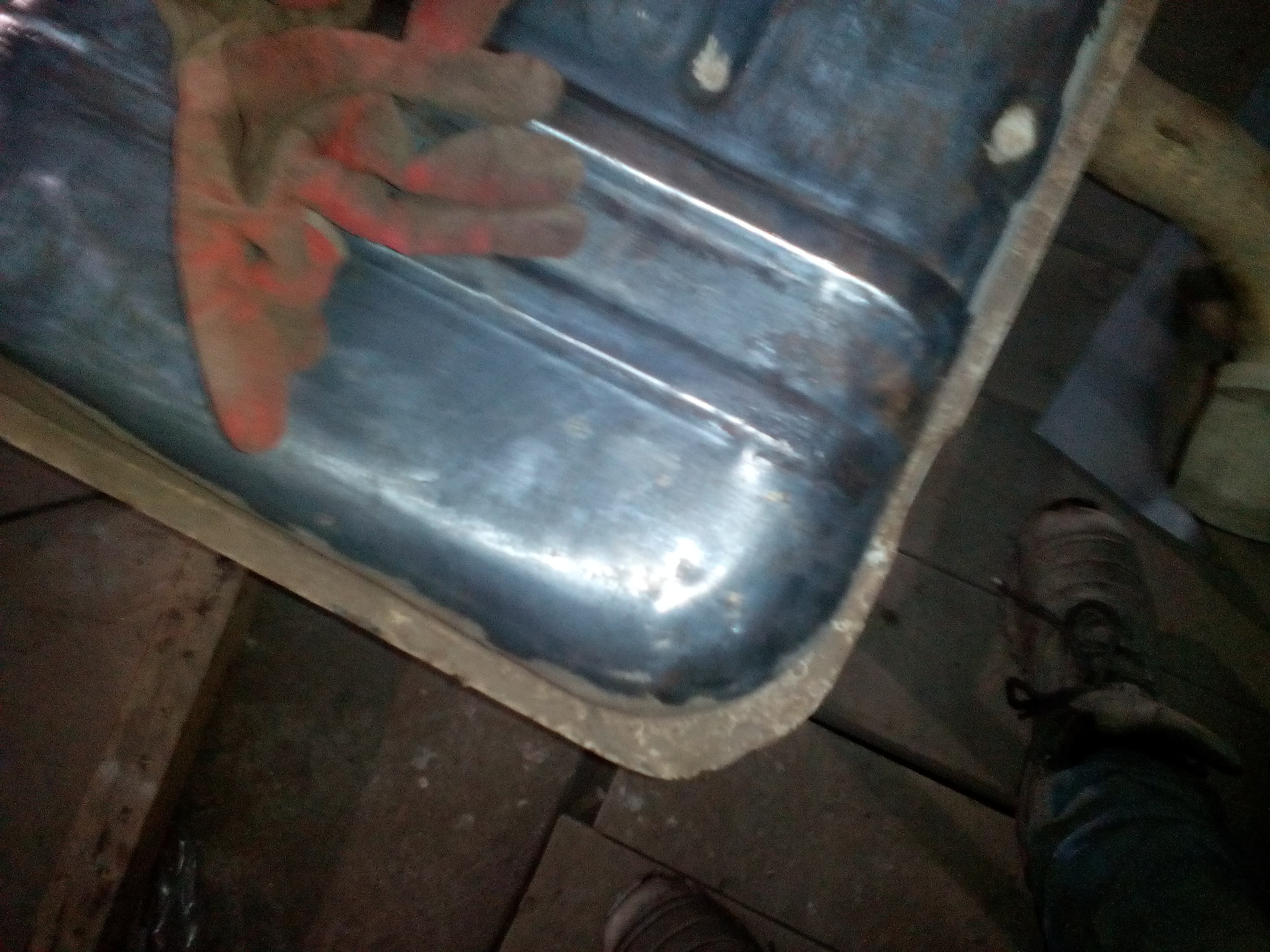 dgonios 339 Жалоба Опубликовано: 20 ноября 2017 эх,я бы и рад купить пару ровных элементов,но засел без работы а соответственно без денег вот и мучаю то,что есть,вот и сегодня весь день плясал с бубном во круг Гарыныча.С перва решил отвлечся и озадачился основным баком зачистил,приготовил латки и к соседям в бокс,там ребята юзают ацетилен,но кончилась латунь на половине дыр,пробовали сталью(гвоздь попался в руки) пока паяли маленькую дырку,продули большую,но всё таки запаяли её этим гвоздём да и многие раковинки начинаешь прогревать ацетиленом и они превращаются в дыры.Было решено расковырять волговский 24й радиатор ради латуни и облудить ей весь низ,но это уже не сегодня дальше пошел мучить капот,вырезал шаблон по решётке,удалил пародию на усилитель,выстучал его по шаблону,предварительно удалив старую шпаклю,а из шпакли были нарисованы все выштамповки с переди включая буквы УиА,если а я только подправил то от У был только слабенький силуэт,и я решил востановить историческую несправедливость-не чеканить У а в место неё выбить Г доделать капот не успел,оказлось что я его пять часов мучал,правда с перерывами на чай и так пару раз отвлекали надеюсь завтра доделать 1 Цитата Поделиться сообщением Ссылка на сообщение Поделиться на других сайтах